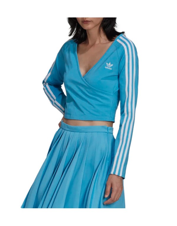 Brand: Adidas Gender: Women Type: T-shirts Season: Spring/Summer PRODUCT DETAIL • Color: light blue • Sleeves: long • Neckline: v-neck COMPOSITION AND MATERIAL • Composition: -93% cotton -7% elastane • Washing: machine wash at 30°