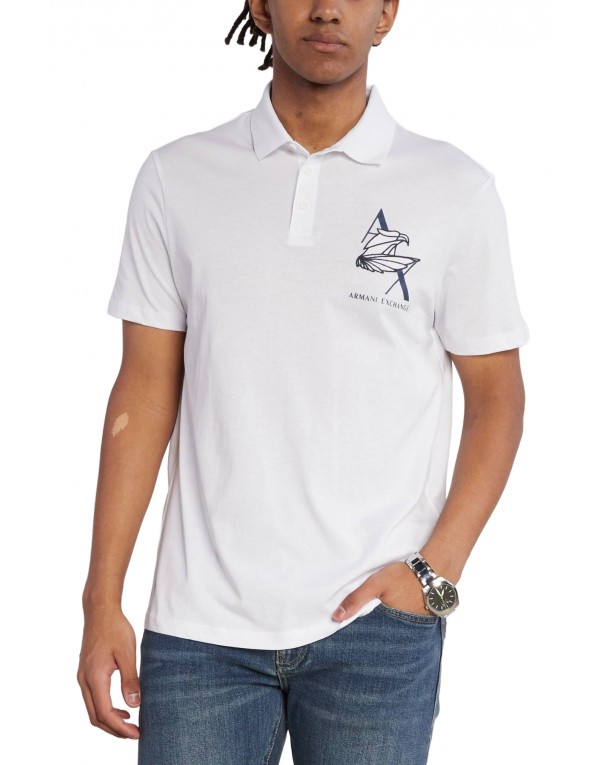 Brand: Armani Exchange Gender: Men Type: Polo Season: Fall/Winter PRODUCT DETAIL • Color: white • Pattern: plain • Fastening: buttons • Sleeves: short • Collar: polo COMPOSITION AND MATERIAL • Composition: -100% cotton • Washing: machine wash at 30°