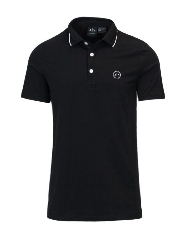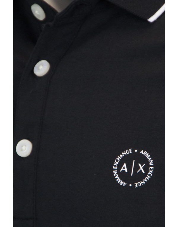 Brand: Armani Exchange Gender: Men Type: Polo Season: Spring/Summer PRODUCT DETAIL • Color: black • Fastening: buttons • Sleeves: short • Collar: polo COMPOSITION AND MATERIAL • Composition: -95% cotton -5% elastane • Washing: machine wash at 30°