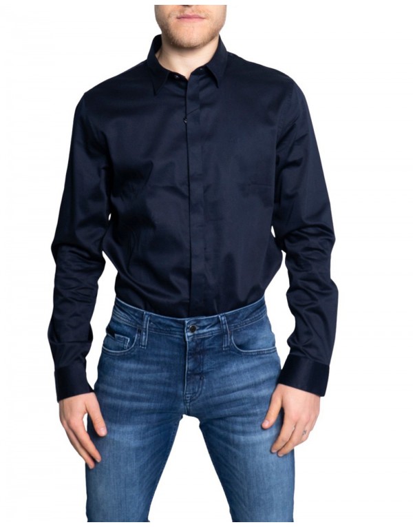Brand: Armani Exchange Gender: Men Type: Shirts Season: Spring/Summer PRODUCT DETAIL • Color: blue • Pattern: plain • Fastening: buttons • Sleeves: long • Collar: classic COMPOSITION AND MATERIAL • Composition: -97% cotton -3% elastane • Washing: machine wash at 30°