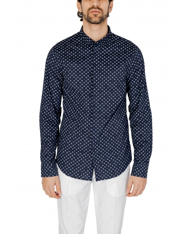 Brand: Armani Exchange Gender: Men Type: Shirts Season: Spring/Summer PRODUCT DETAIL • Color: blue • Pattern: print • Fastening: buttons • Sleeves: long • Neckline: round neck • Collar: classic COMPOSITION AND MATERIAL • Composition: -97% cotton -3% elastane • Washing: machine wash at 30°