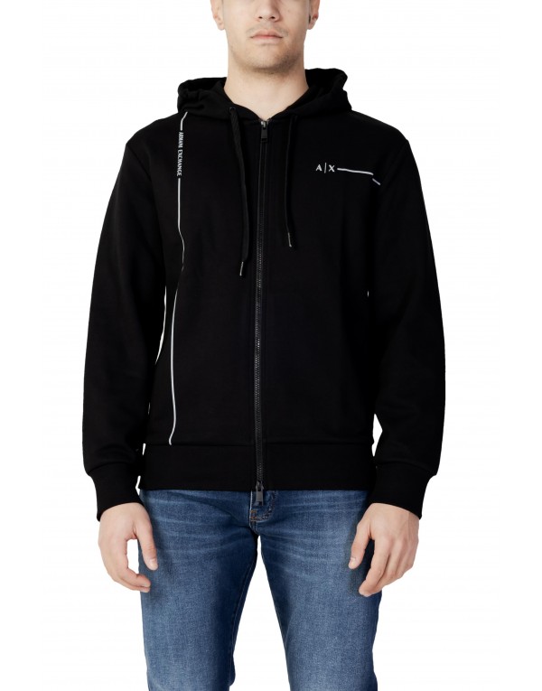 Brand: Armani Exchange Gender: Men Type: Sweatshirts Season: Spring/Summer PRODUCT DETAIL • Color: black • Pattern: plain • Fastening: with zip • Sleeves: long • Collar: hood COMPOSITION AND MATERIAL • Composition: -59% cotton -41% polyester • Washing: machine wash at 30°