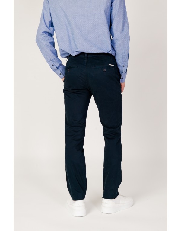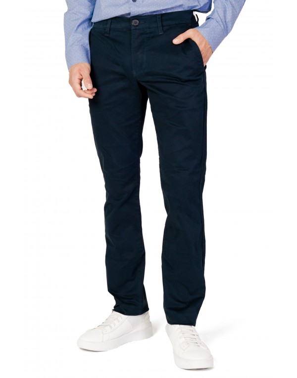 Brand: Armani Exchange Gender: Men Type: Trousers Season: Fall/Winter PRODUCT DETAIL • Color: blue • Pattern: plain • Fastening: zip and button • Pockets: front and back pockets COMPOSITION AND MATERIAL • Composition: -98% cotton -2% elastane • Washing: machine wash at 30°