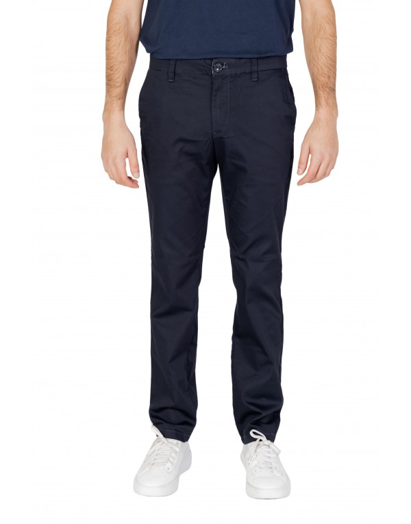 Brand: Armani Exchange Gender: Men Type: Trousers Season: Spring/Summer PRODUCT DETAIL • Color: blue • Fastening: zip and button • Pockets: front and back pockets COMPOSITION AND MATERIAL • Composition: -60% cotton -2% elastane -38% polyester • Washing: machine wash at 30°