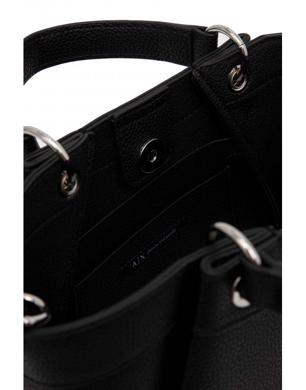 Brand: Armani Exchange Gender: Women Type: Bags Season: Spring/Summer PRODUCT DETAIL • Color: black • Pattern: plain • Fastening: with zip • Size (cm): 18x25x8 • Details: -handbag -with shoulder strap COMPOSITION AND MATERIAL • Composition: -100% polyurethane