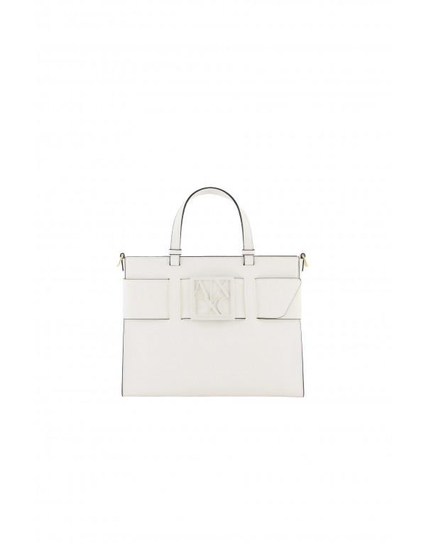 Brand: Armani Exchange Gender: Women Type: Bags Season: Spring/Summer PRODUCT DETAIL • Color: white • Pattern: plain • Fastening: with zip • Size (cm): 25x31x15 • Details: -handbag -with shoulder strap COMPOSITION AND MATERIAL • Composition: -100% polyester -100% polyurethane