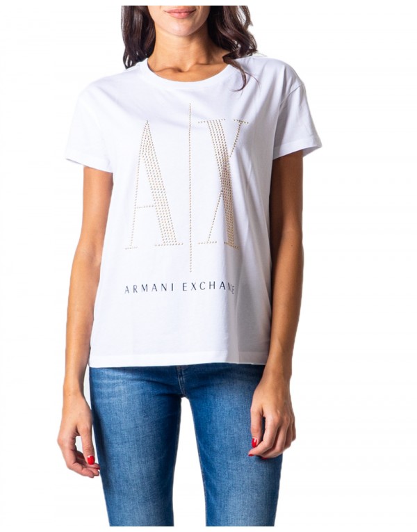 Brand: Armani Exchange Gender: Women Type: T-shirts Season: Fall/Winter PRODUCT DETAIL • Color: white • Pattern: print • Sleeves: short • Neckline: round neck COMPOSITION AND MATERIAL • Composition: -100% cotton • Washing: machine wash at 30°