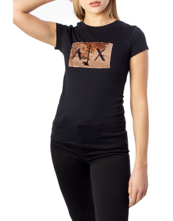 Brand: Armani Exchange Gender: Women Type: T-shirts Season: Spring/Summer PRODUCT DETAIL • Color: black • Pattern: print • Fastening: slip on • Sleeves: short • Neckline: round neck COMPOSITION AND MATERIAL • Composition: -100% cotton • Washing: machine wash at 30°