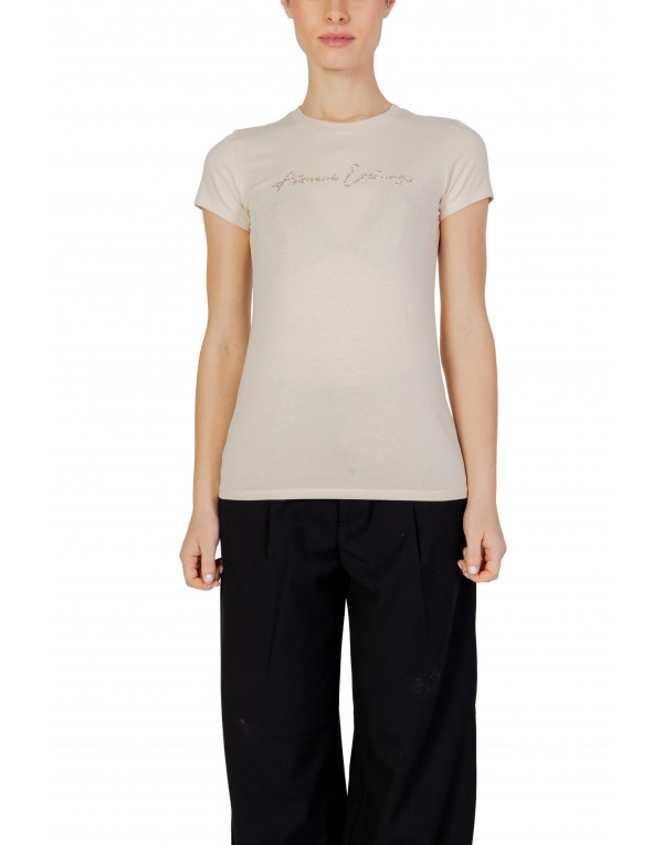 Brand: Armani Exchange Gender: Women Type: T-shirts Season: Spring/Summer PRODUCT DETAIL • Color: beige • Pattern: print • Fastening: slip on • Sleeves: short • Neckline: round neck COMPOSITION AND MATERIAL • Composition: -95% cotton -5% elastane • Washing: machine wash at 30°