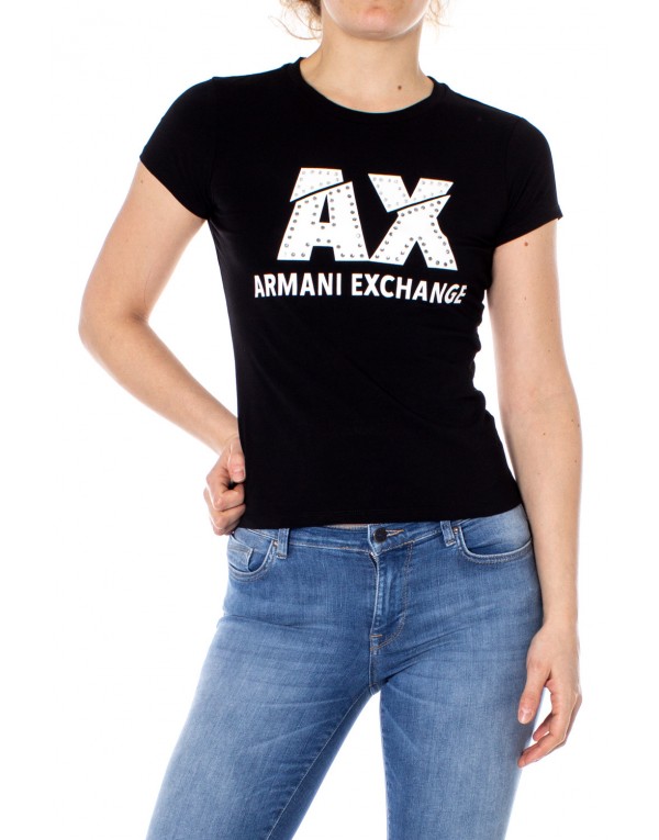 Brand: Armani Exchange Gender: Women Type: T-shirts Season: Spring/Summer PRODUCT DETAIL • Color: black • Pattern: print • Sleeves: short • Neckline: round neck COMPOSITION AND MATERIAL • Composition: -100% various • Washing: machine wash at 30°