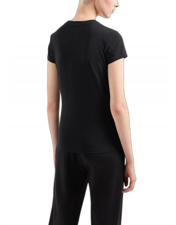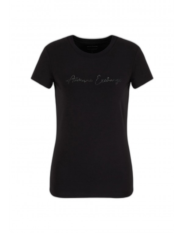 Brand: Armani Exchange Gender: Women Type: T-shirts Season: Spring/Summer PRODUCT DETAIL • Color: black • Pattern: plain • Fastening: slip on • Sleeves: short • Neckline: round neck COMPOSITION AND MATERIAL • Composition: -95% cotton -5% elastane • Washing: machine wash at 30°