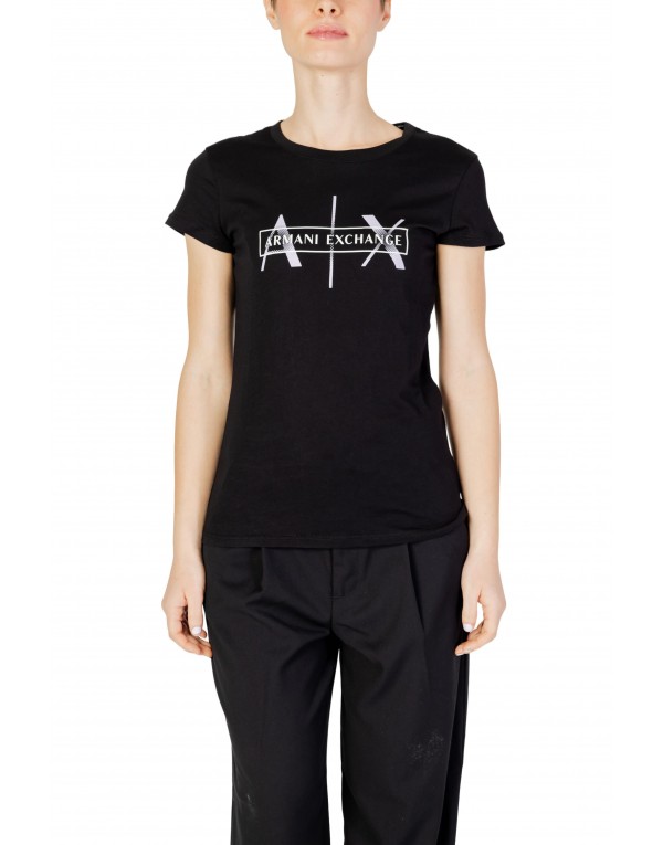 Brand: Armani Exchange Gender: Women Type: T-shirts Season: Spring/Summer PRODUCT DETAIL • Color: black • Pattern: print • Sleeves: short • Neckline: round neck COMPOSITION AND MATERIAL • Washing: machine wash at 30°