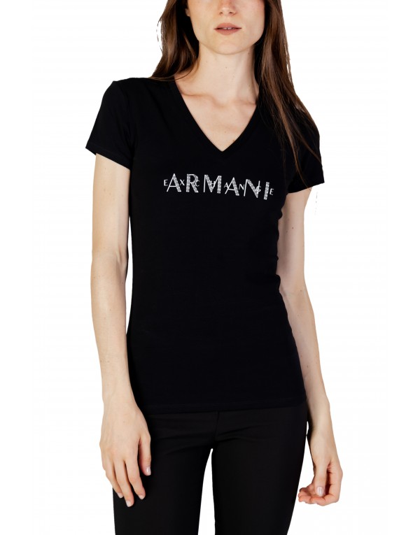 Brand: Armani Exchange Gender: Women Type: T-shirts Season: Fall/Winter PRODUCT DETAIL • Color: black • Pattern: plain • Fastening: slip on • Sleeves: short • Neckline: v-neck COMPOSITION AND MATERIAL • Composition: -95% cotton -5% elastane • Washing: machine wash at 30°