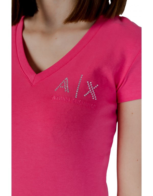 Brand: Armani Exchange Gender: Women Type: T-shirts Season: Spring/Summer PRODUCT DETAIL • Color: fuchsia • Pattern: print • Sleeves: short • Neckline: v-neck COMPOSITION AND MATERIAL • Composition: -95% cotton -5% elastane • Washing: machine wash at 30°