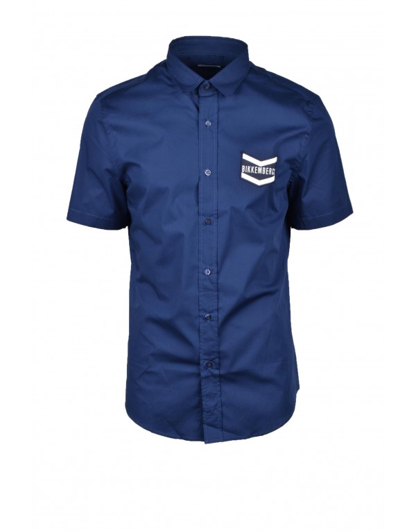 Brand: Bikkembergs Gender: Men Type: Shirts Season: Spring/Summer PRODUCT DETAIL • Color: blue • Fastening: buttons • Sleeves: short • Collar: classic COMPOSITION AND MATERIAL • Composition: -96% cotton -4% elastane • Washing: machine wash at 30°