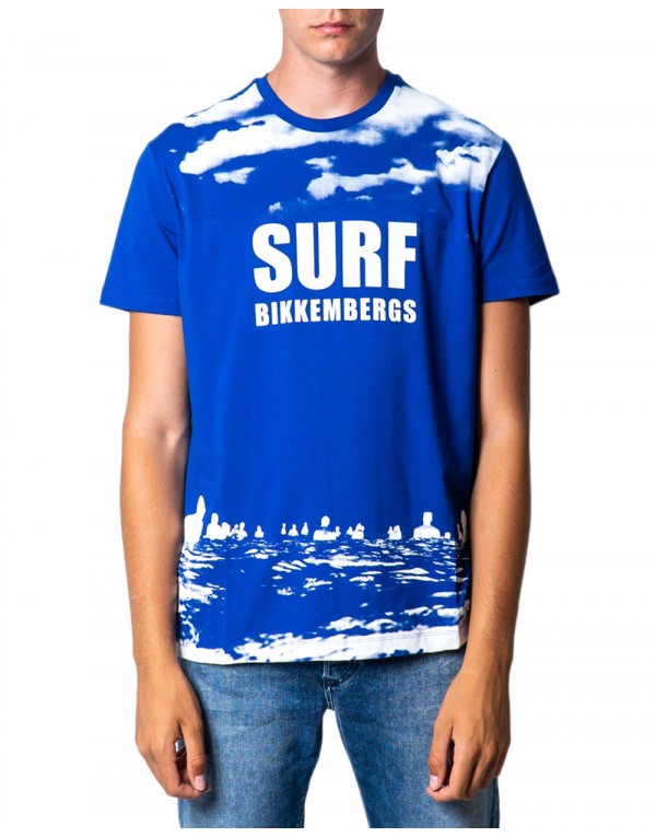 Brand: Bikkembergs Gender: Men Type: T-shirts Season: Spring/Summer PRODUCT DETAIL • Color: light blue • Pattern: print • Sleeves: short COMPOSITION AND MATERIAL • Washing: machine wash at 30°