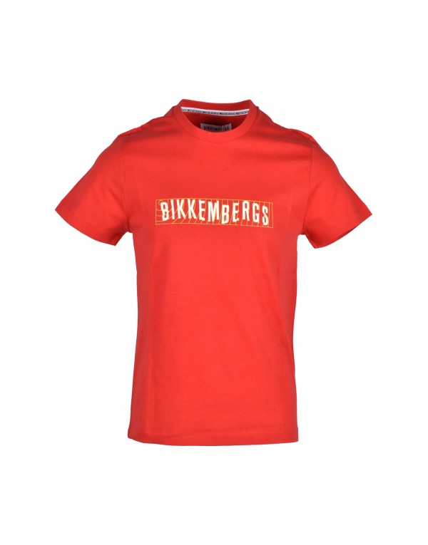 Brand: Bikkembergs Gender: Men Type: T-shirts Season: Fall/Winter PRODUCT DETAIL • Color: red • Pattern: print • Sleeves: short • Neckline: round neck COMPOSITION AND MATERIAL • Composition: -100% cotton • Washing: machine wash at 30°