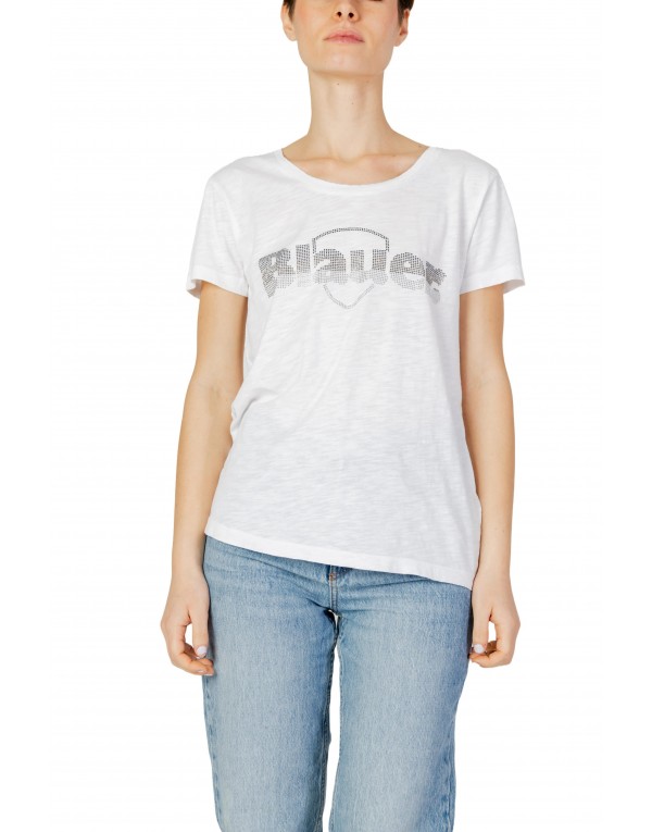 Brand: Blauer Gender: Women Type: T-shirts Season: Spring/Summer PRODUCT DETAIL • Color: white • Pattern: print • Sleeves: short • Neckline: round neck COMPOSITION AND MATERIAL • Composition: -100% cotton • Washing: machine wash at 30°