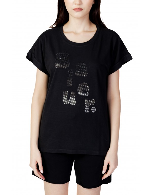 Brand: Blauer Gender: Women Type: T-shirts Season: Spring/Summer PRODUCT DETAIL • Color: black • Pattern: print • Sleeves: short • Neckline: round neck • Details: -rhinestones COMPOSITION AND MATERIAL • Composition: -100% cotton • Washing: machine wash at 30°