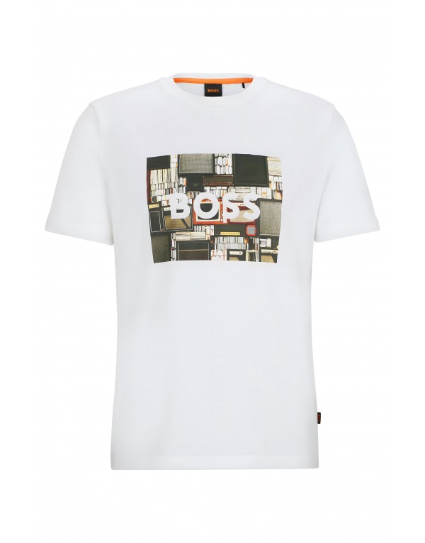 Brand: Boss Gender: Men Type: T-shirts Season: Spring/Summer PRODUCT DETAIL • Color: white • Pattern: print • Fastening: slip on • Sleeves: short • Neckline: round neck COMPOSITION AND MATERIAL • Composition: -100% cotton • Washing: machine wash at 30°