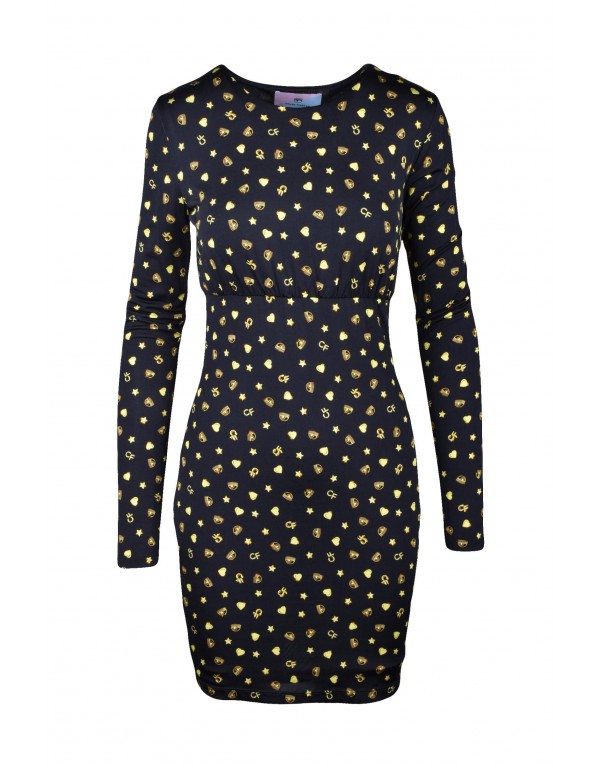 Brand: Chiara Ferragni Gender: Women Type: Dresses Season: Fall/Winter PRODUCT DETAIL • Color: black • Pattern: print • Fastening: slip on • Sleeves: long • Neckline: round neck COMPOSITION AND MATERIAL • Composition: -10% elastane -90% viscose