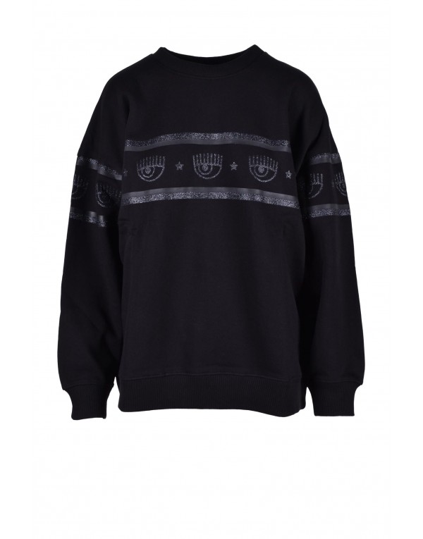 Brand: Chiara Ferragni Gender: Women Type: Sweatshirts Season: Fall/Winter PRODUCT DETAIL • Color: black • Pattern: print • Sleeves: long • Neckline: round neck COMPOSITION AND MATERIAL • Composition: -100% cotton • Washing: machine wash at 30°