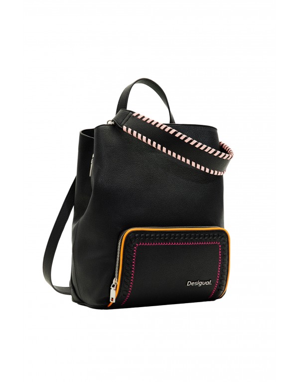 Brand: Desigual Gender: Women Type: Bags Season: Spring/Summer PRODUCT DETAIL • Color: black • Pattern: plain • Fastening: with zip • Pockets: front pockets • Size (cm): 0.32x0.31x10 • Details: -rucksack COMPOSITION AND MATERIAL • Composition: -100% polyurethane
