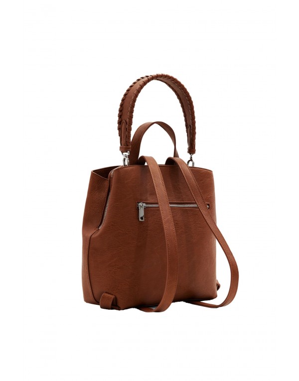 Brand: Desigual Gender: Women Type: Bags Season: Spring/Summer PRODUCT DETAIL • Color: brown • Pattern: plain • Fastening: with zip • Pockets: front pockets • Size (cm): 29X24.5X8.6 • Details: -rucksack COMPOSITION AND MATERIAL • Composition: -100% polyurethane