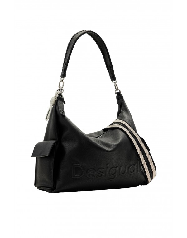 Brand: Desigual Gender: Women Type: Bags Season: Spring/Summer PRODUCT DETAIL • Color: black • Fastening: with zip • Size (cm): 32.20x40.3x12 • Details: -shoulder bags COMPOSITION AND MATERIAL • Composition: -100% polyurethane