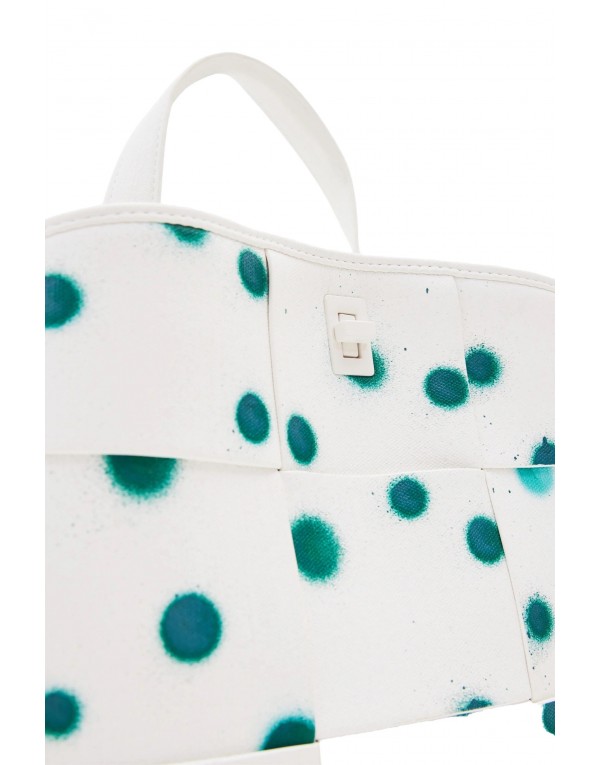 Brand: Desigual Gender: Women Type: Bags Season: Spring/Summer PRODUCT DETAIL • Color: white • Pattern: polka dot • Fastening: with zip • Size (cm): 29x25.5x10 • Details: -rucksack COMPOSITION AND MATERIAL • Composition: -100% polyurethane