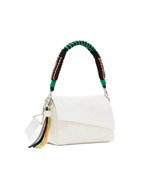 Brand: Desigual Gender: Women Type: Bags Season: Spring/Summer PRODUCT DETAIL • Color: white • Size (cm): 15x22.5x10.5 • Details: -handbag -with shoulder strap COMPOSITION AND MATERIAL • Composition: -35% other fibres -31% cotton -34% polyurethane
