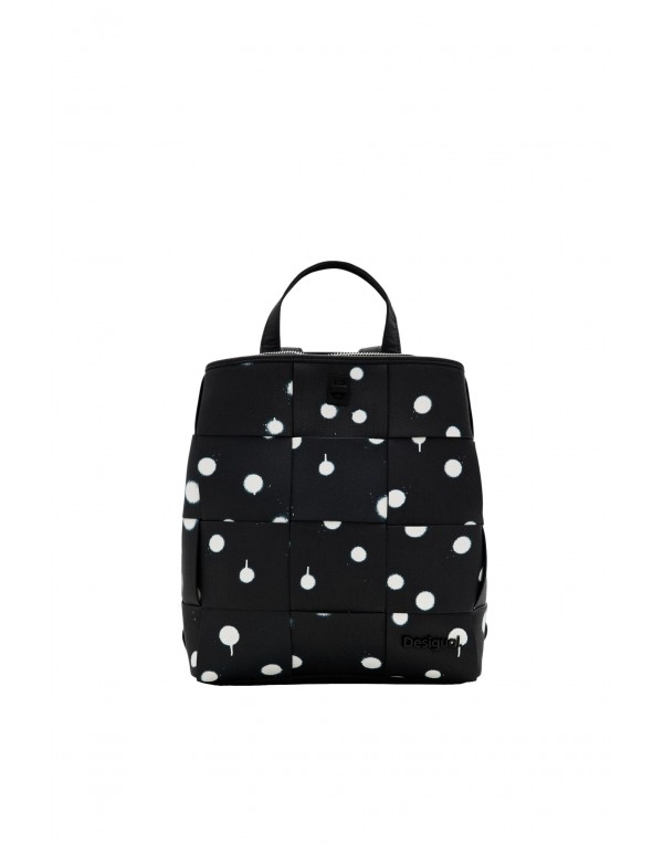 Brand: Desigual Gender: Women Type: Bags Season: Spring/Summer PRODUCT DETAIL • Color: black • Pattern: polka dot • Fastening: with zip • Size (cm): 29x25.5x10 • Details: -rucksack COMPOSITION AND MATERIAL • Composition: -100% polyurethane