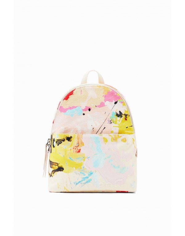 Brand: Desigual Gender: Women Type: Bags Season: Spring/Summer PRODUCT DETAIL • Color: beige • Pattern: print • Fastening: with zip • Size (cm): 30.5x23.8x12 • Details: -handbag -rucksack COMPOSITION AND MATERIAL • Composition: -100% cotton