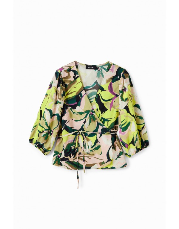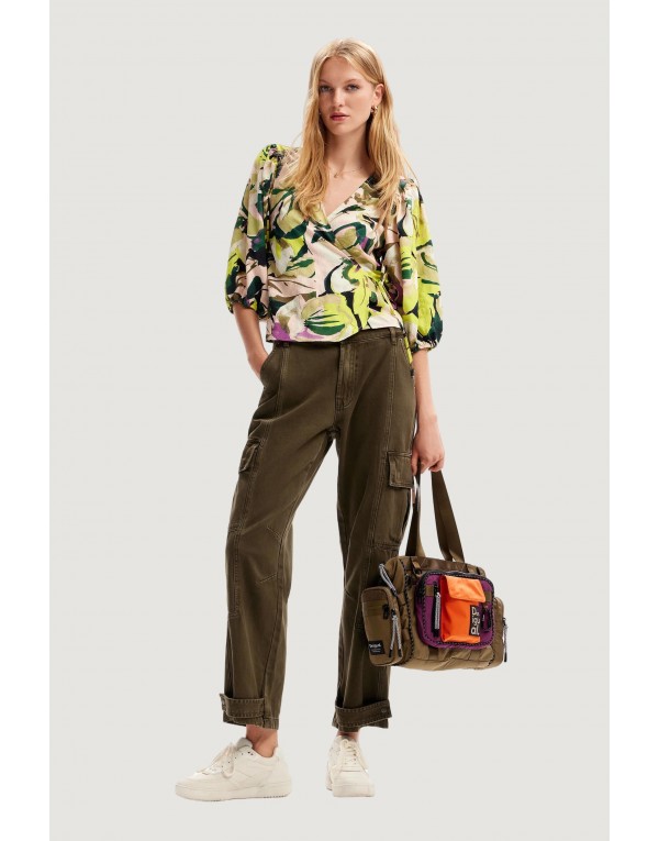 Brand: Desigual Gender: Women Type: Blouse Season: Fall/Winter PRODUCT DETAIL • Color: green • Pattern: print • Fastening: laces • Sleeves: long • Neckline: v-neck COMPOSITION AND MATERIAL • Composition: -2% elastane -98% polyester • Washing: machine wash at 30°