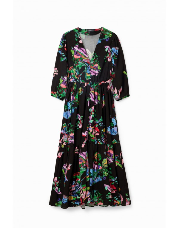 Brand: Desigual Gender: Women Type: Dresses Season: Fall/Winter PRODUCT DETAIL • Color: black • Pattern: print • Fastening: slip on • Sleeves: long • Neckline: v-neck COMPOSITION AND MATERIAL • Composition: -100% viscose • Washing: machine wash at 30°