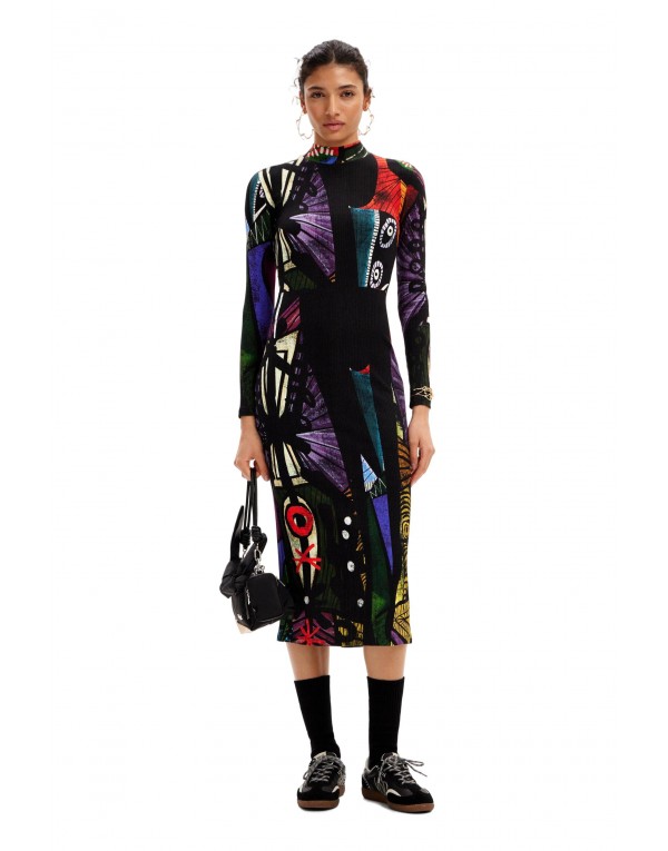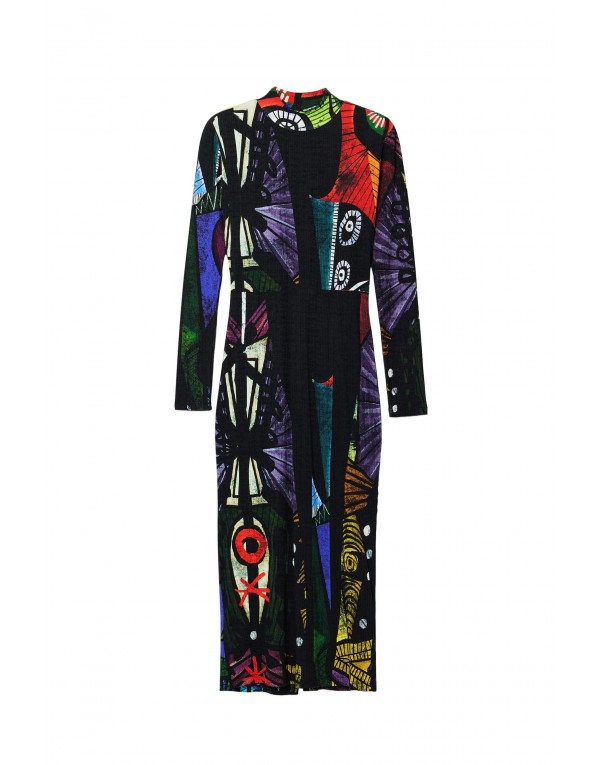 Brand: Desigual Gender: Women Type: Dresses Season: Spring/Summer PRODUCT DETAIL • Color: black • Pattern: print • Sleeves: long • Neckline: round neck COMPOSITION AND MATERIAL • Composition: -7% elastane -93% viscose
