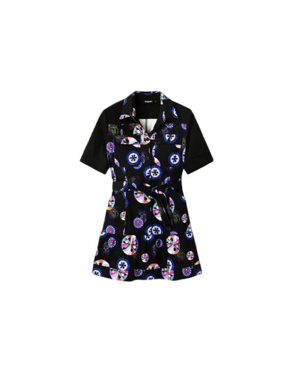 Brand: Desigual Gender: Women Type: Dresses Season: Spring/Summer PRODUCT DETAIL • Color: black • Pattern: print • Fastening: buttons • Sleeves: short • Collar: classic COMPOSITION AND MATERIAL • Composition: -97% cotton -3% elastane • Washing: machine wash at 30°