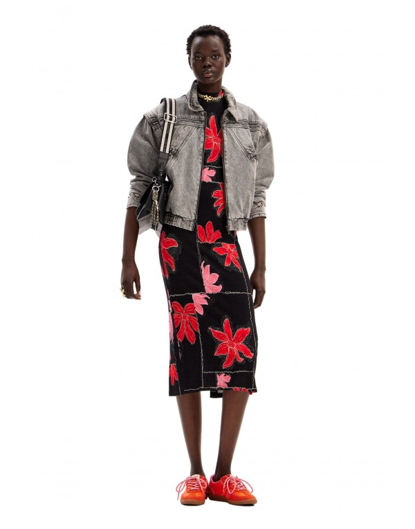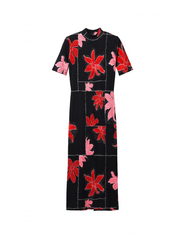 Brand: Desigual Gender: Women Type: Dresses Season: Spring/Summer PRODUCT DETAIL • Color: red • Pattern: floral • Sleeves: short • Neckline: turtleneck COMPOSITION AND MATERIAL • Composition: -7% elastane -93% viscose • Washing: machine wash at 30°