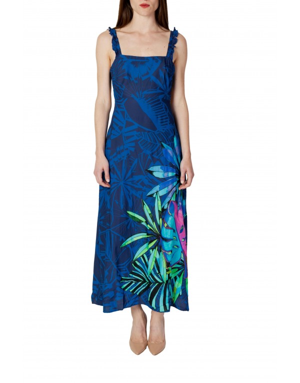 Brand: Desigual Gender: Women Type: Dresses Season: Spring/Summer PRODUCT DETAIL • Color: blue • Pattern: floral • Fastening: laces • Sleeves: straps • Neckline: square neckline COMPOSITION AND MATERIAL • Composition: -100% viscose