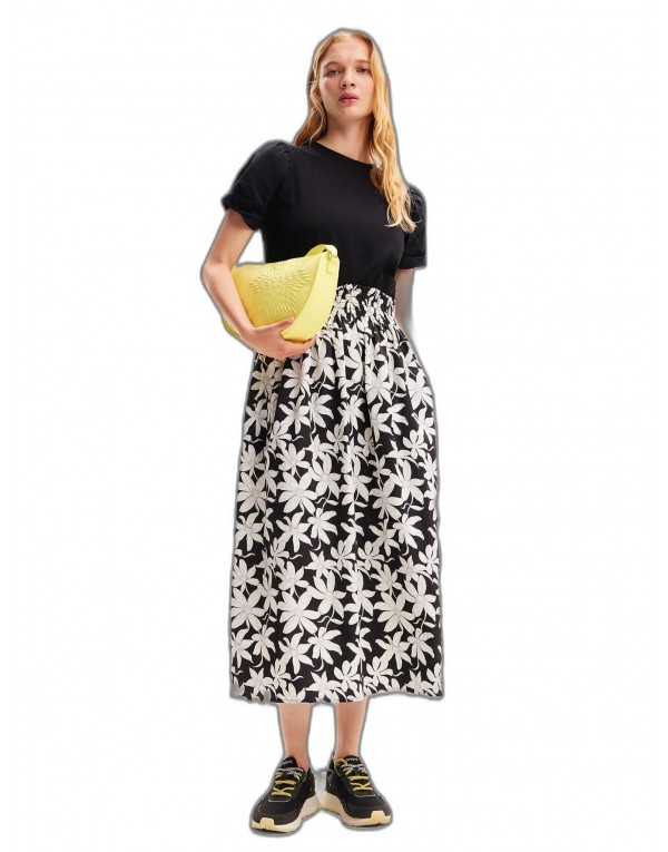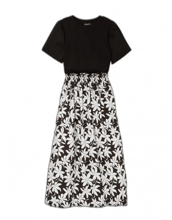 Brand: Desigual Gender: Women Type: Dresses Season: Spring/Summer PRODUCT DETAIL • Color: black • Pattern: floral • Sleeves: short • Neckline: round neck • Pockets: side pockets COMPOSITION AND MATERIAL • Composition: -100% cotton • Washing: machine wash at 30°