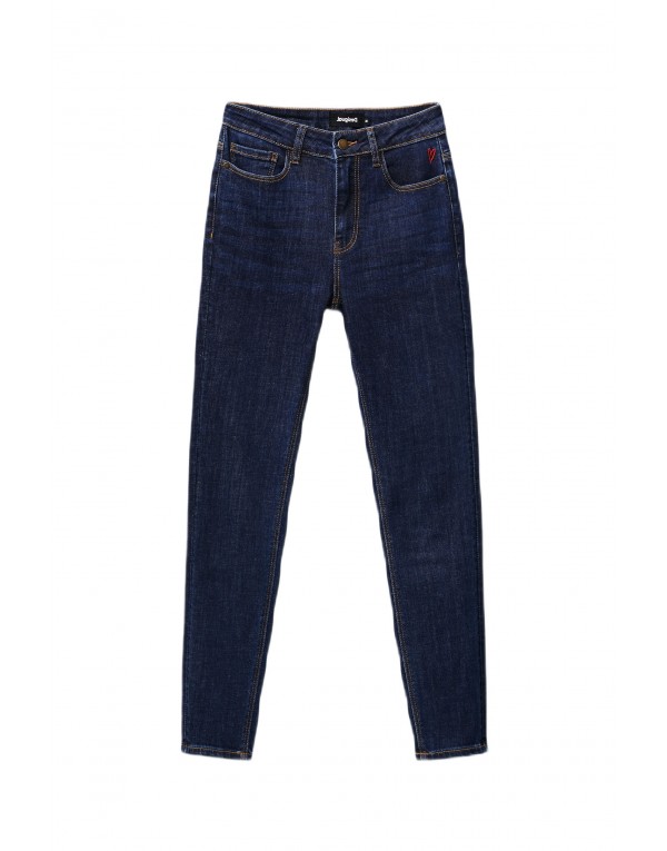 Brand: Desigual Gender: Women Type: Jeans Season: Spring/Summer PRODUCT DETAIL • Color: blue • Pattern: plain • Fastening: zip and button • Pockets: front and back pockets COMPOSITION AND MATERIAL • Composition: -90% cotton -2% elastane -8% polyester • Washing: machine wash at 30°