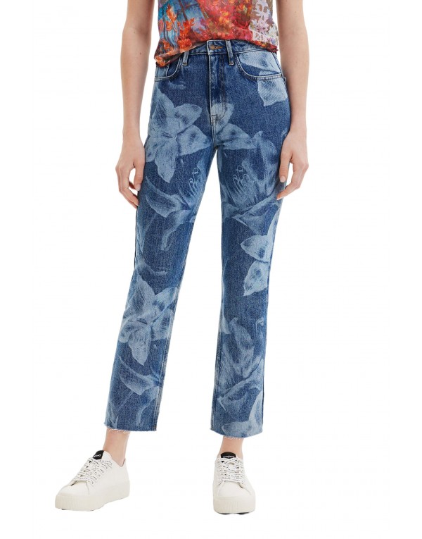 Brand: Desigual Gender: Women Type: Jeans Season: Fall/Winter PRODUCT DETAIL • Color: blue • Pattern: floral • Fastening: zip and button • Pockets: front and back pockets COMPOSITION AND MATERIAL • Composition: -100% cotton • Washing: machine wash at 30°