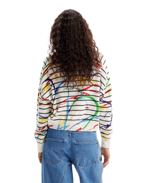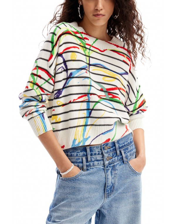 Brand: Desigual Gender: Women Type: Knitwear Season: Spring/Summer PRODUCT DETAIL • Color: white • Pattern: print • Sleeves: long • Neckline: round neck COMPOSITION AND MATERIAL • Composition: -100% cotton • Washing: machine wash at 30°