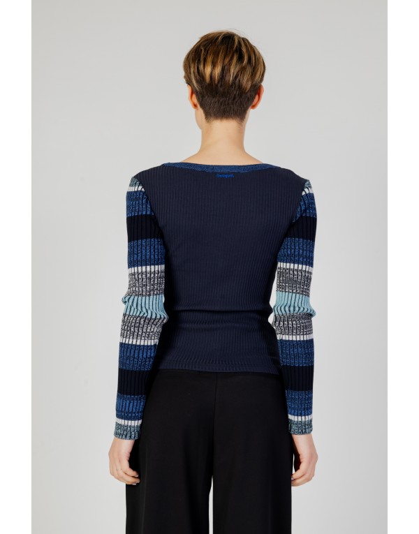 Brand: Desigual Gender: Women Type: Knitwear Season: Spring/Summer PRODUCT DETAIL • Color: blue • Pattern: plain • Fastening: slip on • Sleeves: long • Neckline: round neck COMPOSITION AND MATERIAL • Composition: -45% cotton -2% elastane -16% polyester -37% viscose • Washing: machine wash at 30°
