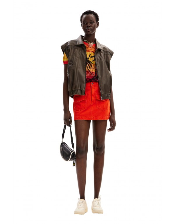 Brand: Desigual Gender: Women Type: Knitwear Season: Spring/Summer PRODUCT DETAIL • Color: orange • Pattern: coloured • Sleeves: short • Neckline: round neck COMPOSITION AND MATERIAL • Composition: -72% rayon -28% viscose • Washing: machine wash at 30°