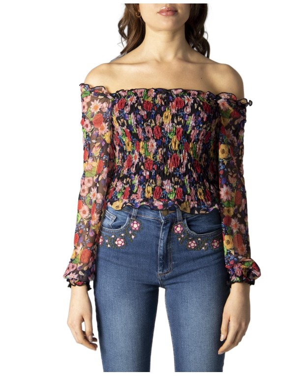 Brand: Desigual Gender: Women Type: T-shirts Season: Spring/Summer PRODUCT DETAIL • Color: black • Pattern: floral • Fastening: slip on • Sleeves: long • Neckline: boat neck COMPOSITION AND MATERIAL • Composition: -7% elastane -93% polyester • Washing: machine wash at 30°