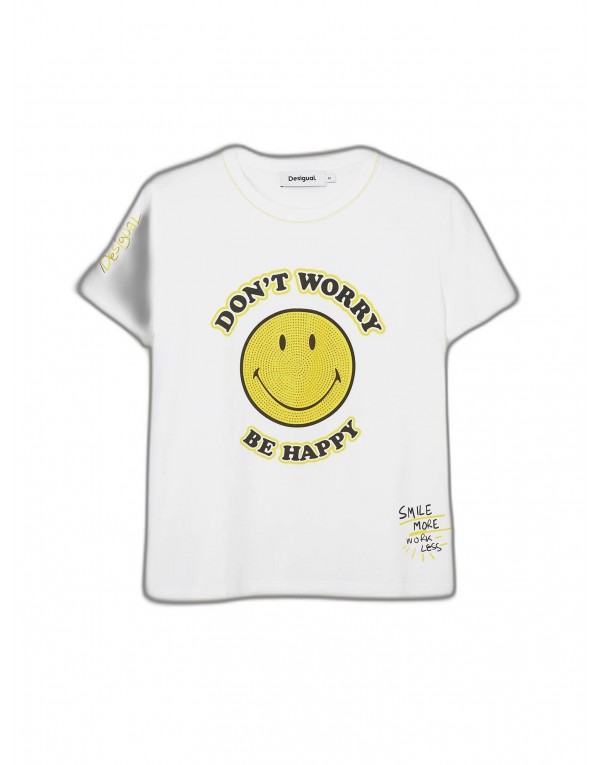 Brand: Desigual Gender: Women Type: T-shirts Season: Spring/Summer PRODUCT DETAIL • Color: white • Pattern: print • Sleeves: short • Neckline: round neck COMPOSITION AND MATERIAL • Composition: -95% cotton -5% elastane • Washing: machine wash at 30°