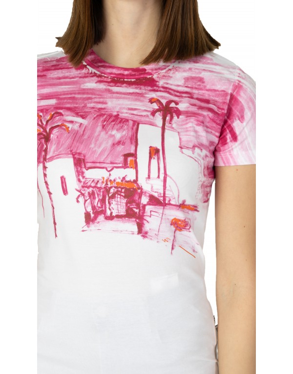Brand: Desigual Gender: Women Type: T-shirts Season: Spring/Summer PRODUCT DETAIL • Color: pink • Pattern: coloured • Sleeves: short • Neckline: round neck COMPOSITION AND MATERIAL • Composition: -95% cotton -5% elastane • Washing: machine wash at 30°