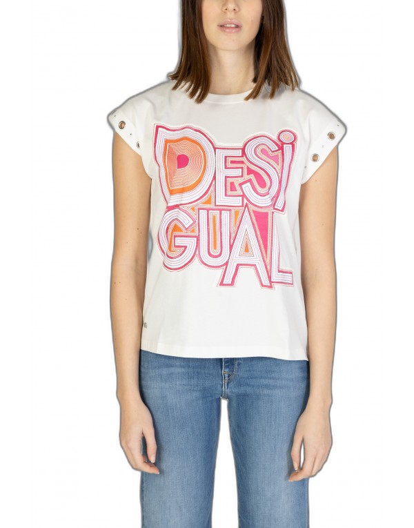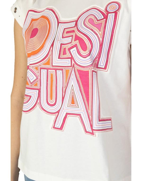 Brand: Desigual Gender: Women Type: T-shirts Season: Spring/Summer PRODUCT DETAIL • Color: white • Pattern: print • Sleeves: short • Neckline: round neck COMPOSITION AND MATERIAL • Composition: -100% cotton • Washing: machine wash at 30°
