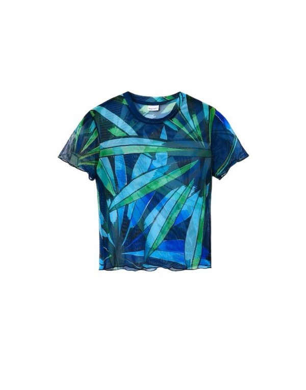 Brand: Desigual Gender: Women Type: T-shirts Season: Spring/Summer PRODUCT DETAIL • Color: blue • Pattern: print • Sleeves: short • Neckline: round neck COMPOSITION AND MATERIAL • Composition: -7% elastane -93% polyester • Washing: machine wash at 30°